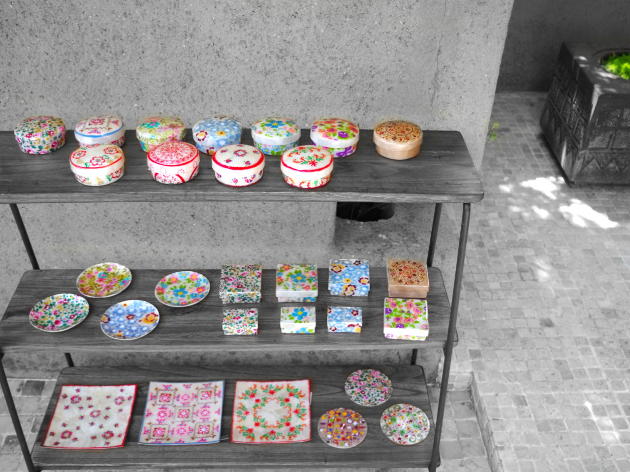 フィリピンの透明に透けるカピス貝 加工して 綺麗な柄をペインティングしてできた雑貨達