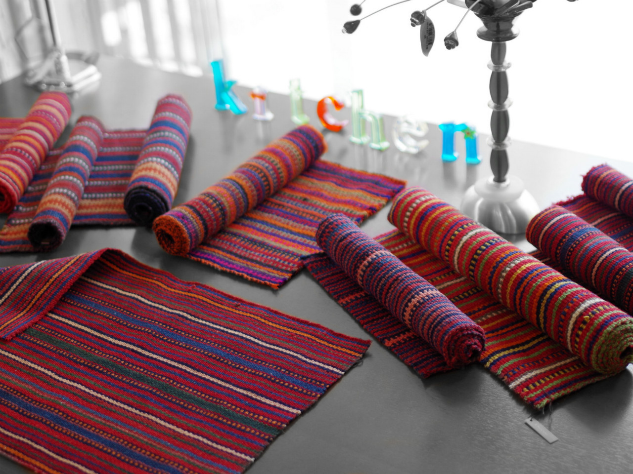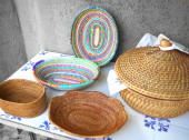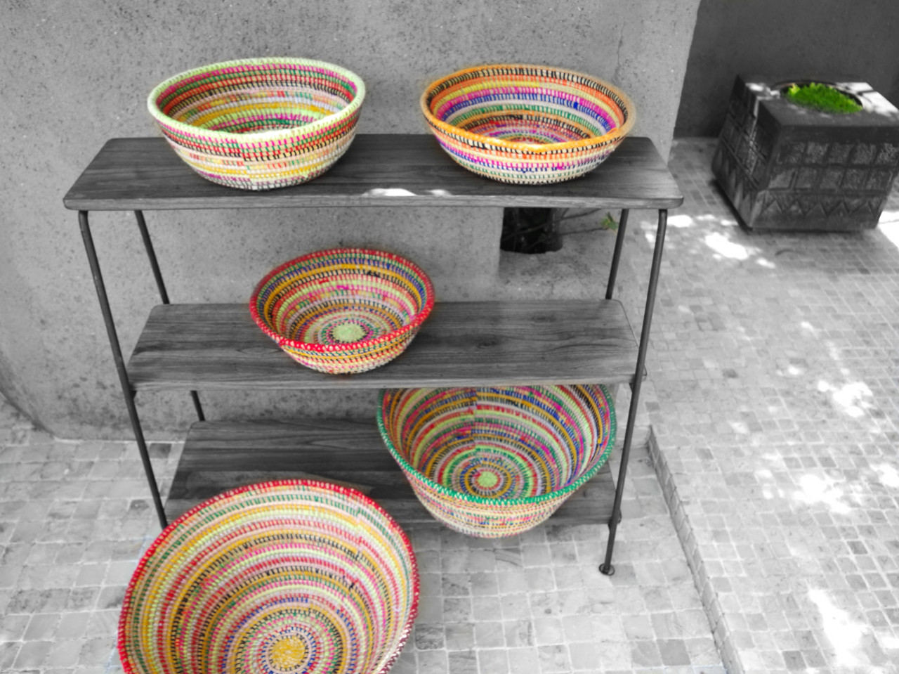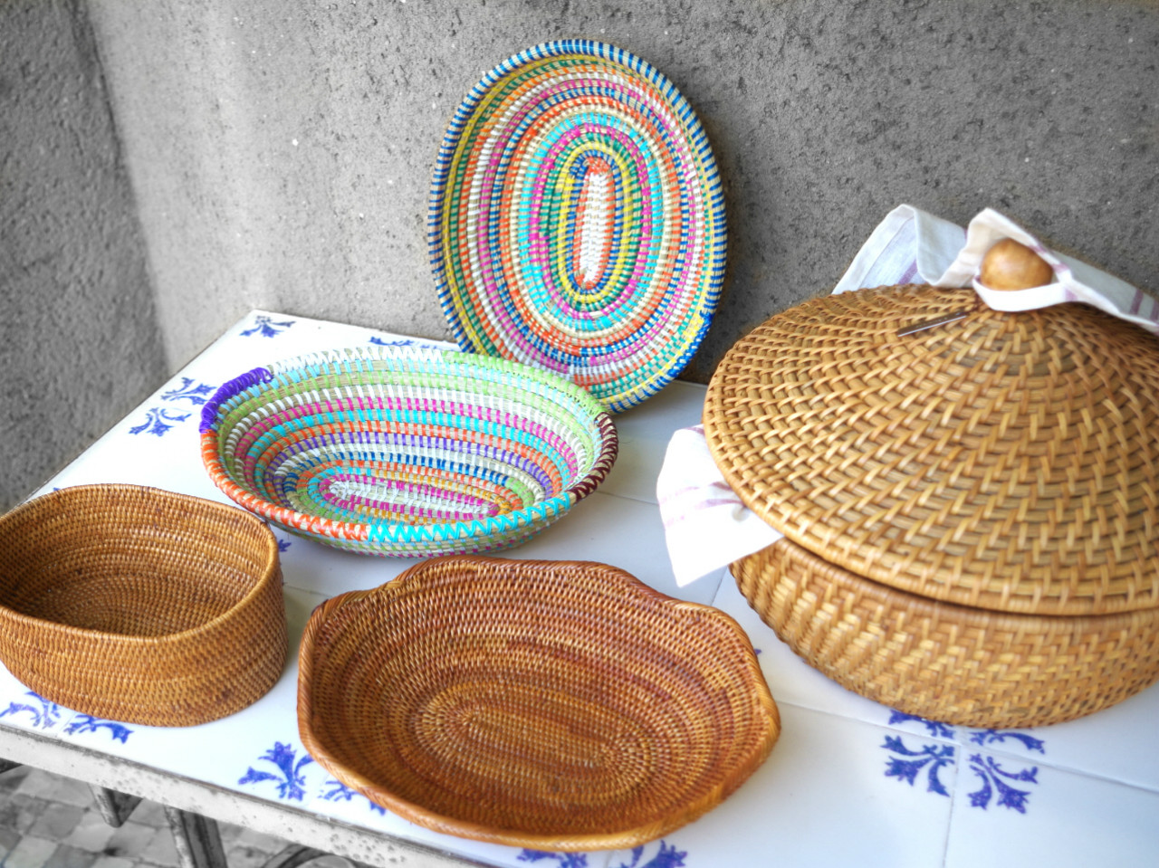 アフリカからは水草で編まれたバスケット トルコのオールドキリムのランチョン