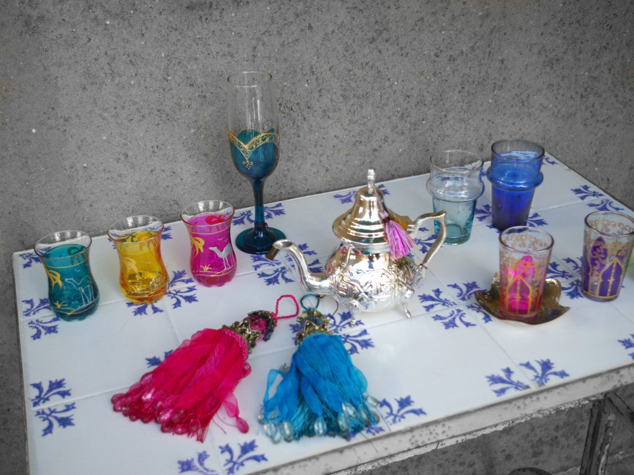 モロッコ伝統のミントティーグラスは プレーンなものから色鮮やかなものまで