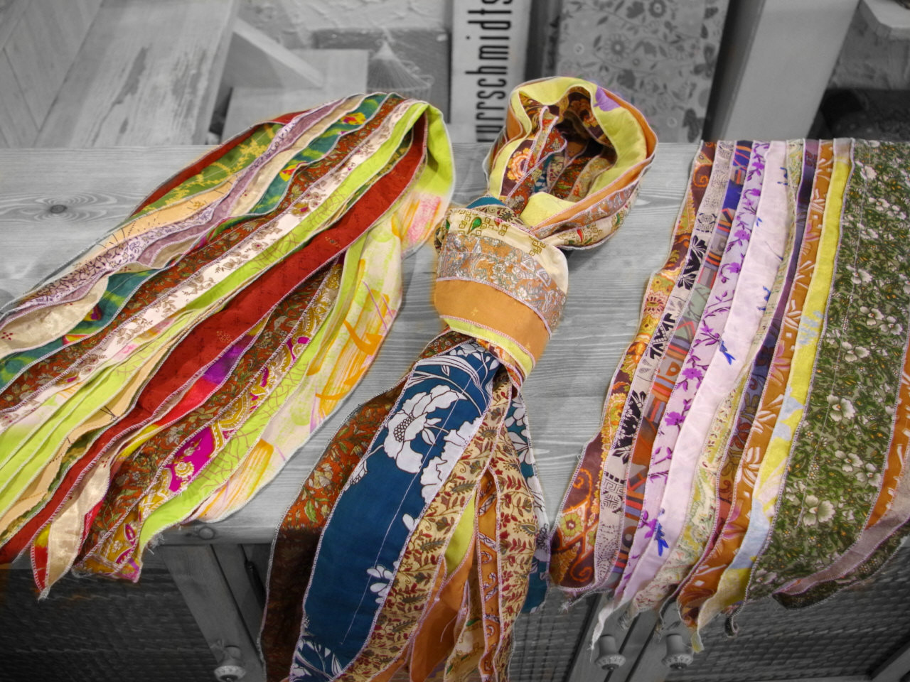 使うたびに そのきれいな色づかいにハッとするハンカチ オリエンタル古布のストールなど